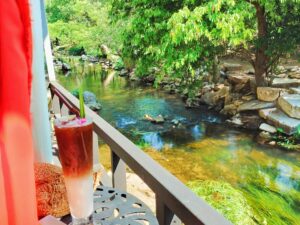 หากท่านใดไม่ได้มาพัก สามารถแวะมาทานอาหาร กินไปฟังเสียงน้ำตกไป สัมผัสธรรมชาติแบบใกล้ชิด ลงเดินเล่นริมธารหรือจะเล่นน้ำตกที่เป็นต้นน้ำก่อนไหลลงสู่น้ำตกมวกเหล็ก น้ำใสจนเห็นพื้นด้านล่าง สายคอนเท้นต์ต้องไม่พลาด มุมถ่ายรูปเพียบ